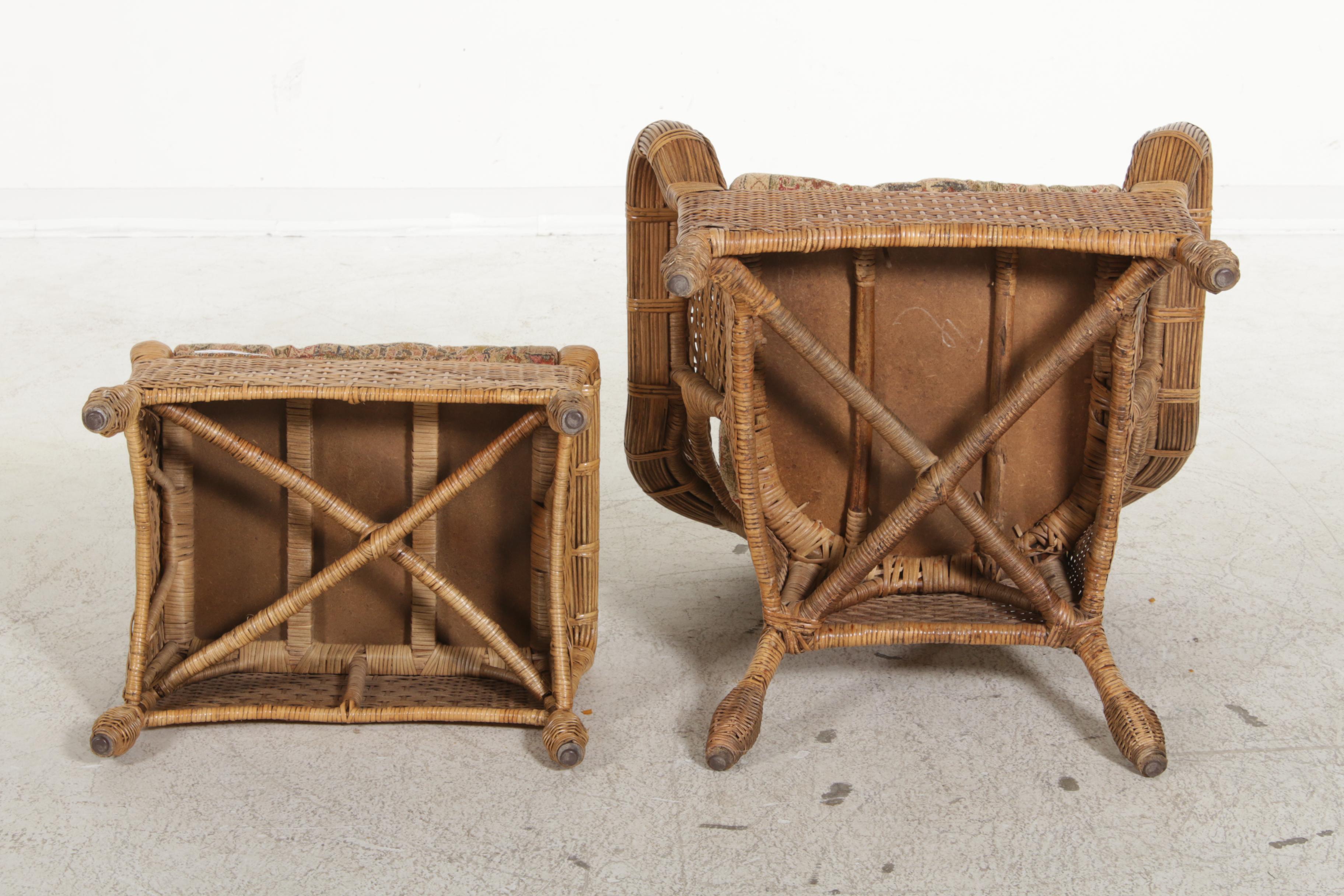 Woven Rattan Armchair And Ottoman / Pottery Barn Woven Wicker Armchair and Ottoman | EBTH / Both chairs share an open, woven rattan that adds.. The strong rubber wood and compressed wood frame provides lasting strength and structure. Vintage wicker rattan arm chair lounge balcony arm chair rattan furniture lounge armchair curved rounded porch chair grasshanghai. Find the best ottoman included armchairs & accent chairs for your home in 2021 with the carefully curated selection available to shop at houzz. Rustic woven rattan basket, serving ottoman wicker baskets for catchall, fruit storage basket ravenstudiocrafts. East at main krukka natural rattan ottoman.