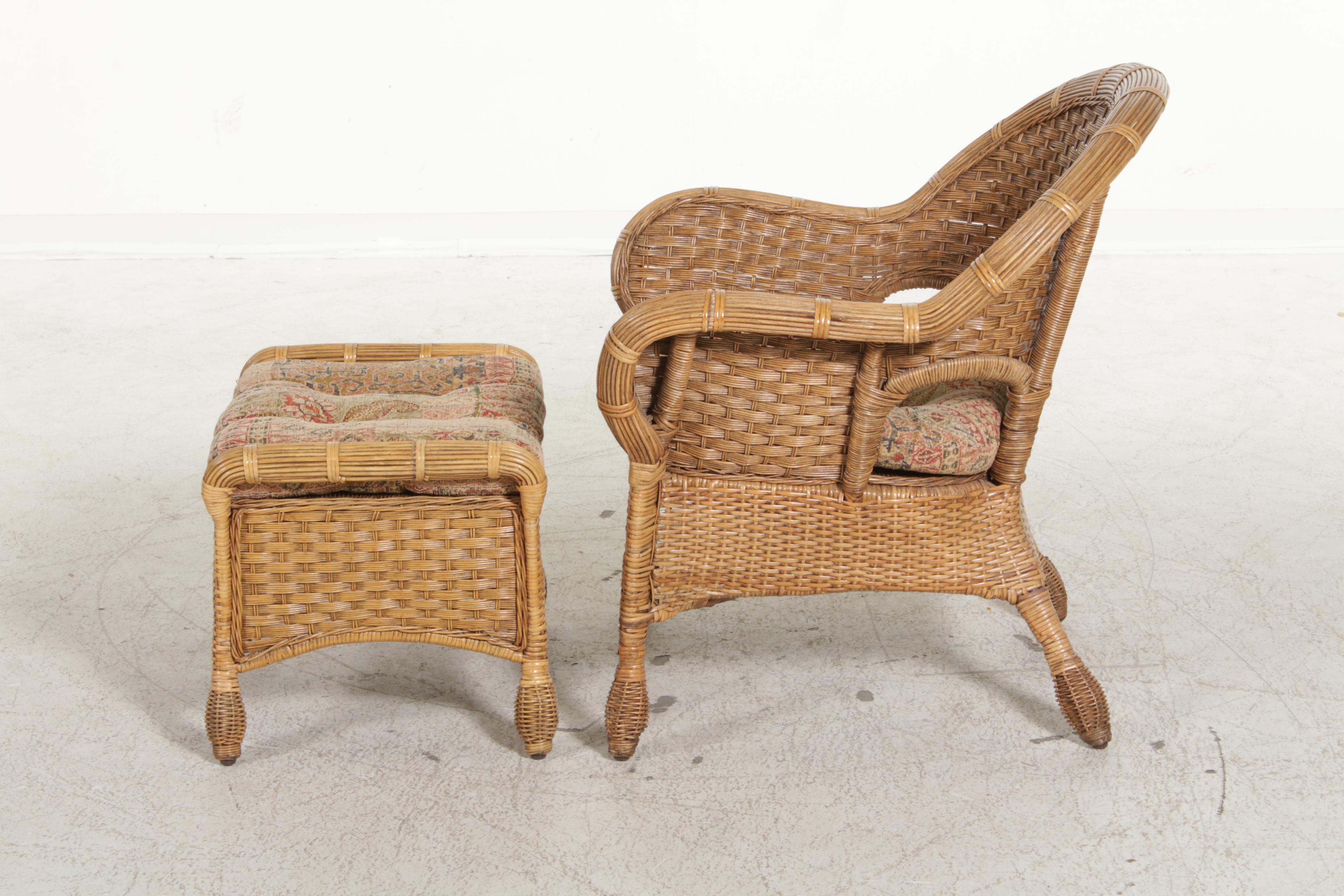 Pottery Barn Woven Wicker Armchair and Ottoman | EBTH from ebth-com-production.imgix.net The rattan and wicker are in very good overall condition with one area of damage to the ottoman which can be seen in the photos. This armchair arrives with an ottoman, so you can kick up your feet. Bring a boho beach vibe to your space with the. Get it as soon as mon, feb 8. This versatile ottoman is ideal as a footrest and extra seating or used as a coffee table with an accent tray on top. This ottoman is covered with woven rattan. Vintage wicker rattan arm chair lounge balcony arm chair rattan furniture lounge armchair curved rounded porch chair grasshanghai. Every graceful curve of our sorrel rattan chair and ottoman is steam bent and woven by hand of strong, natural rattan.